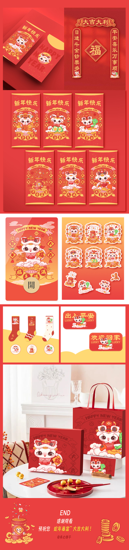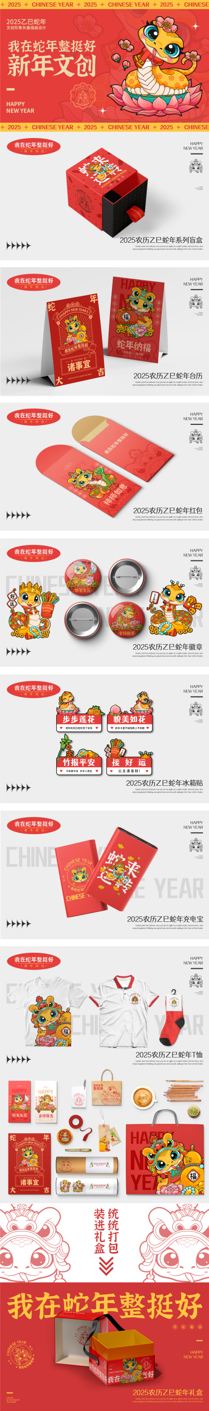 蛇年卡通形象文创品牌矢量包装插画【我在蛇年整挺好】