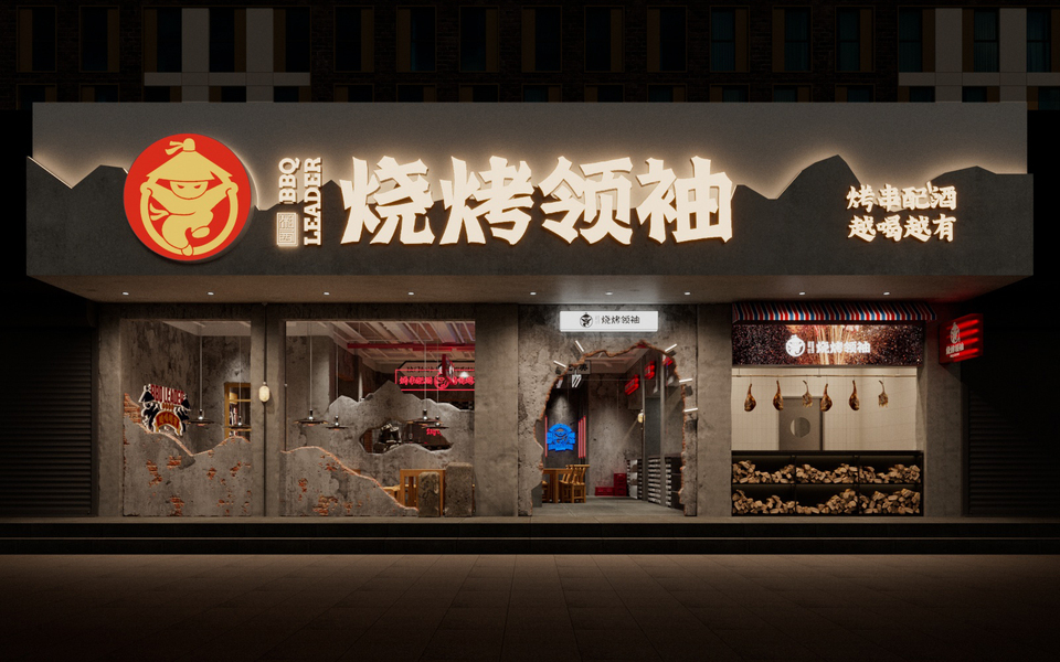 【给炙给夹烤肉店】门头+灯箱海报设计