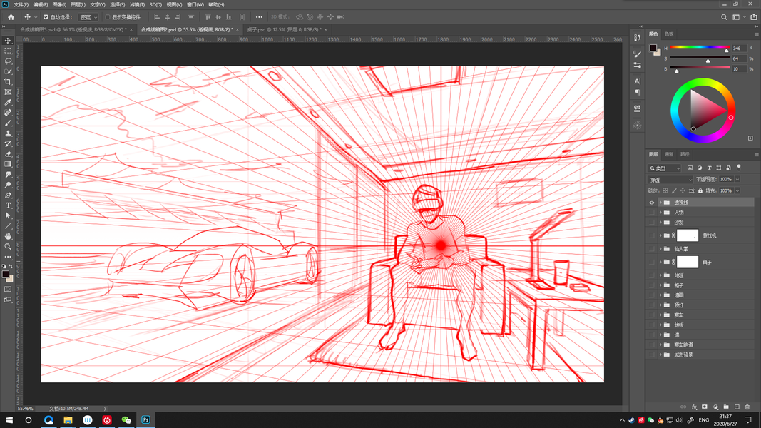 场景合成练习-透视修正-色彩调整-明暗调整-简单画场景