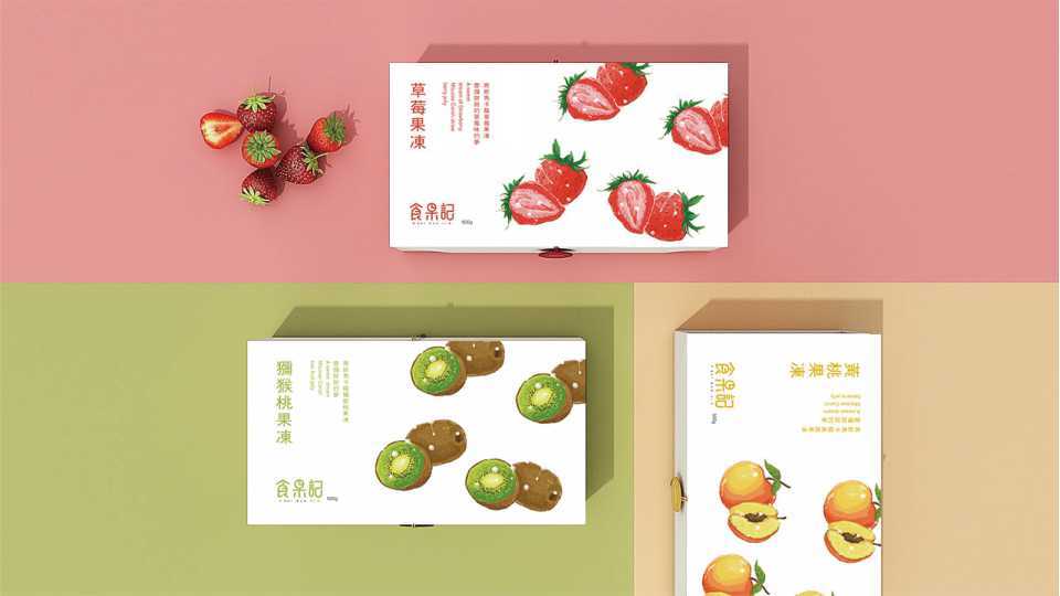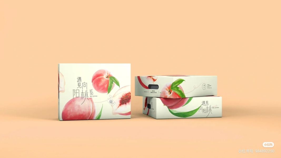 {原创}水果桃食品包装礼盒手绘插画设计