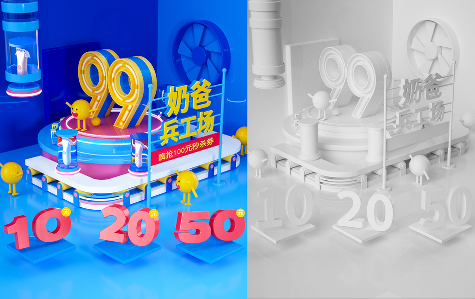 88会员节促销页黑金C4D场景首页设计儿童电话手表3Dmax
