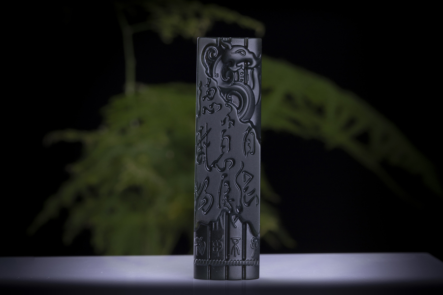 乌铜走银 · 五福捧寿墨盒