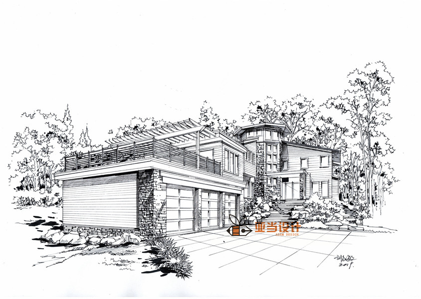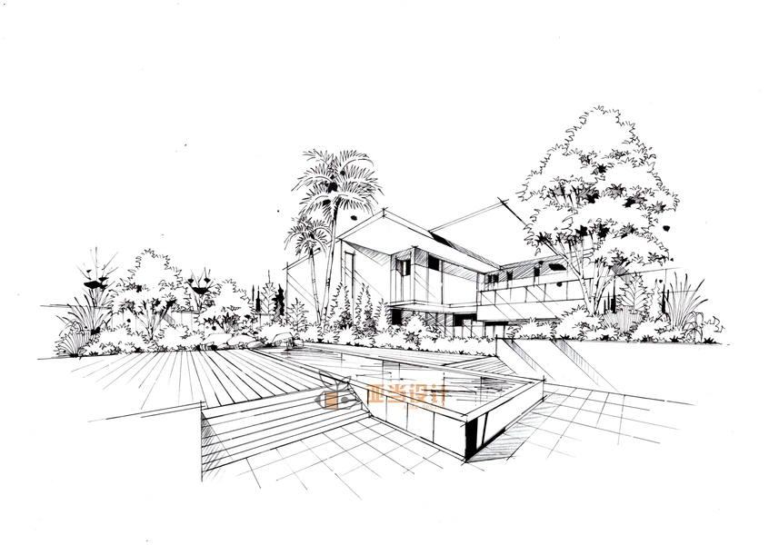 别墅设计马克笔手绘——江西农大风景园林复试快题