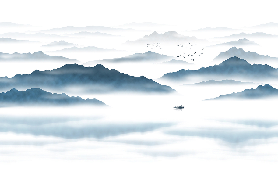 蓝色意境山水画