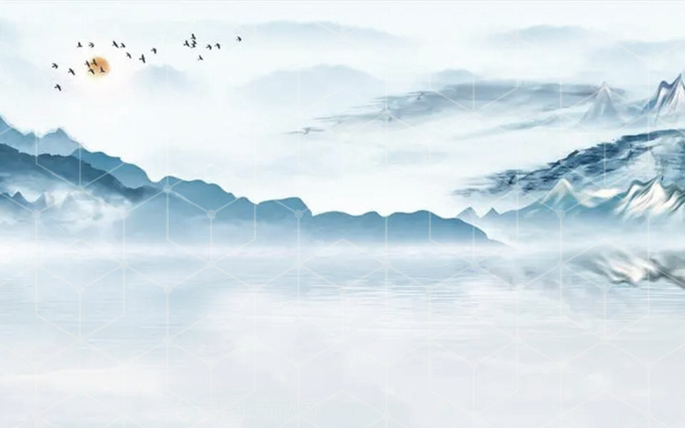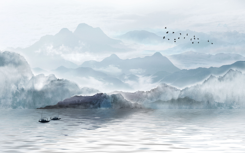 手绘中国风意境水墨山水 淡雅水墨山水背景画