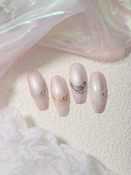 金色猫眼粉美甲