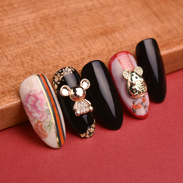 新年美甲饰品拍摄 新年风格 金红配色美甲