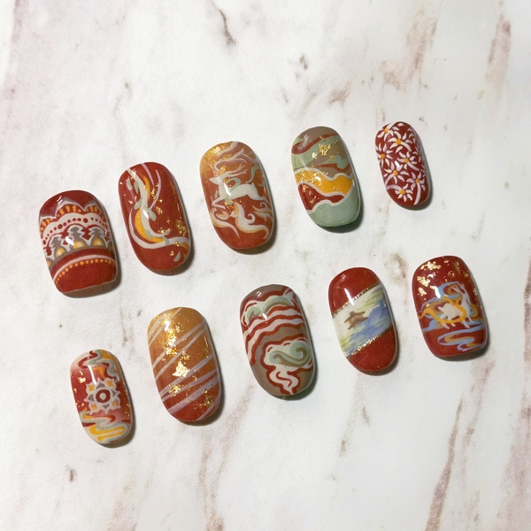原创国风纹样美甲