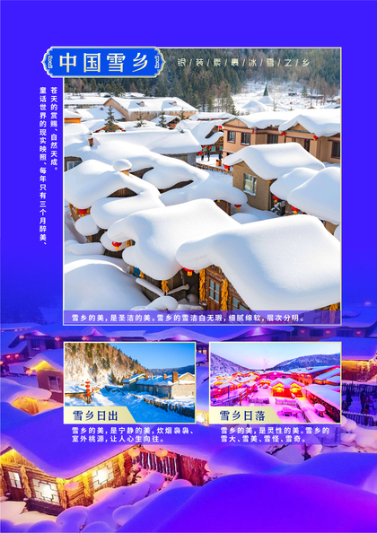 最美雪乡印象雪村旅行攻略旅游风土人情介绍PPT模版