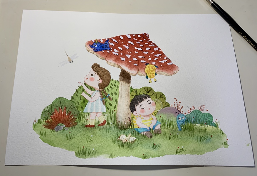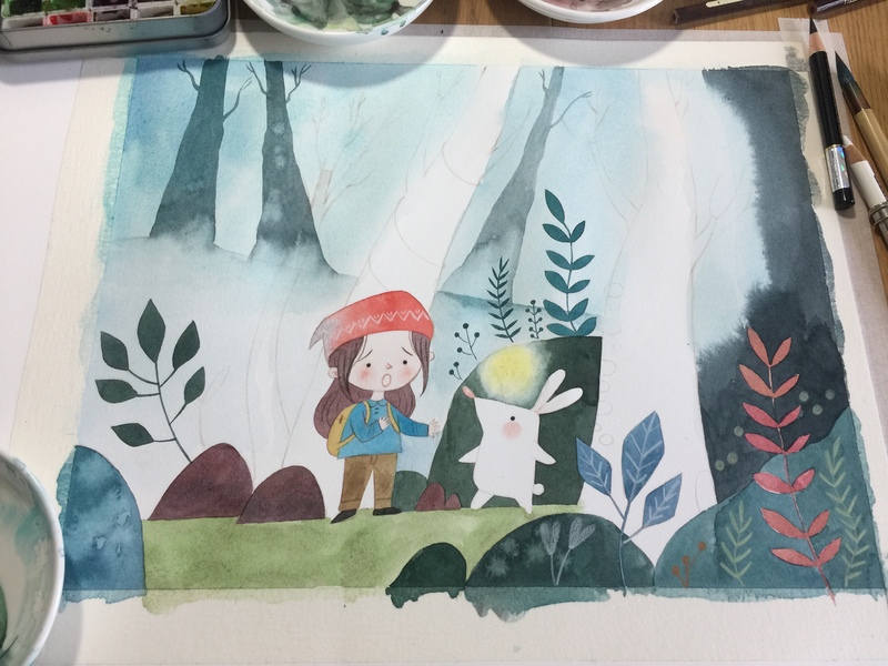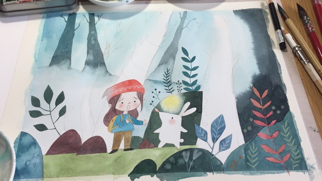 想像个魔法师一样,可以做很多很多。。。(水彩插画)