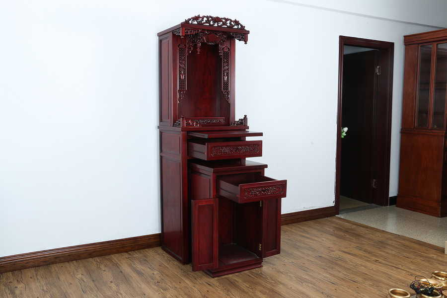 花梨木佛龛紫檀色套柜 佛教用品产品摄影