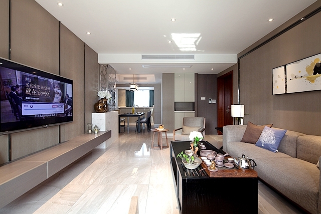 沈阳兴邦装饰电话——88m²现代风格,淡荷幽香