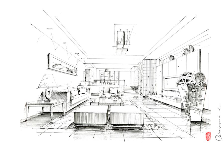 【集尤客手绘作品】徐明老师室内空间手绘线稿快速表达