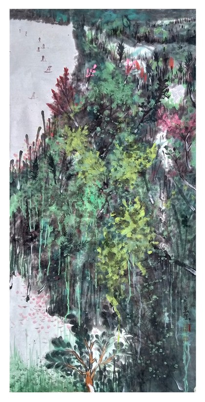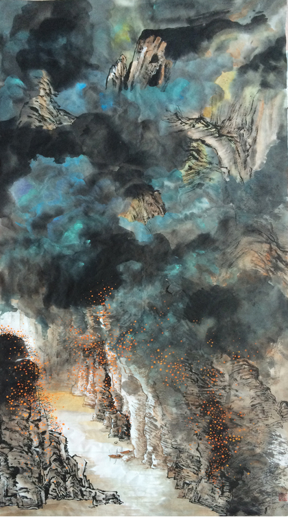 中国青年画家江杰路作品--暮从碧山下 山岳随人归