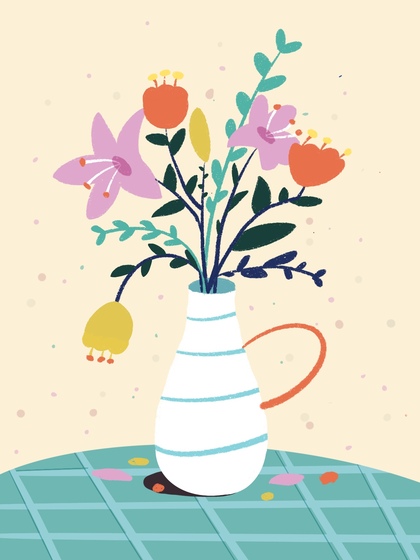 手绘小清新插花花瓶