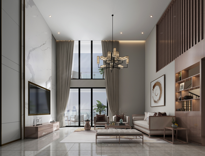 新江与城天越装修参考图,现代中式别墅设计效果图