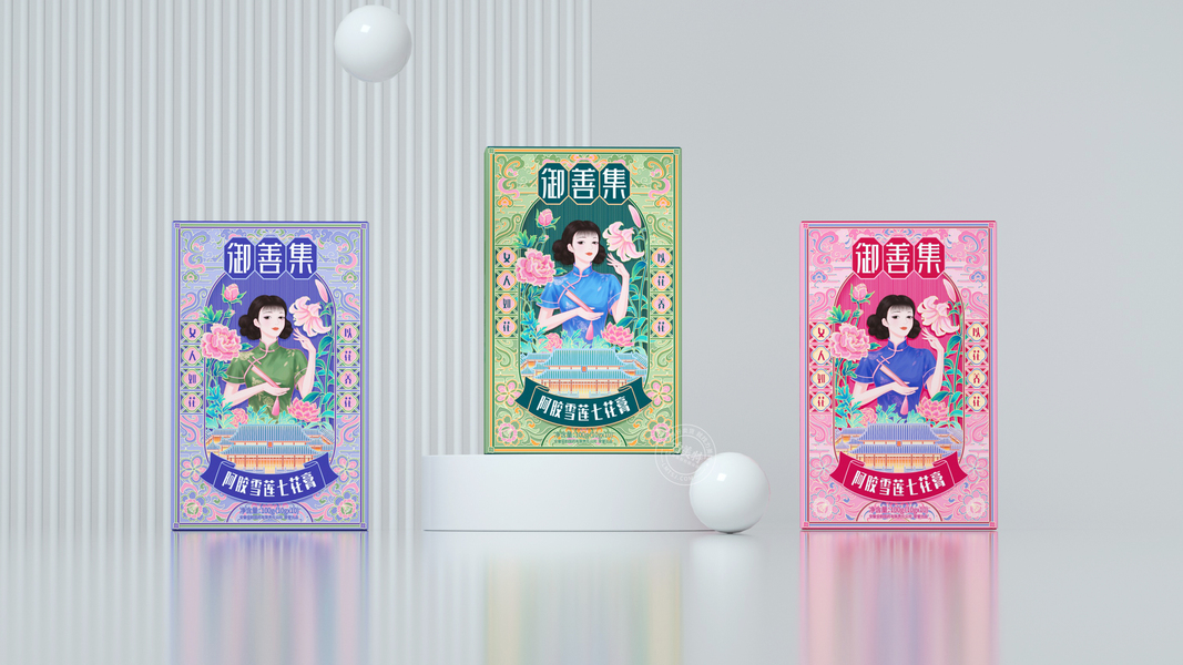 保健品包装设计 国风包装设计 国风插画 盒装包装