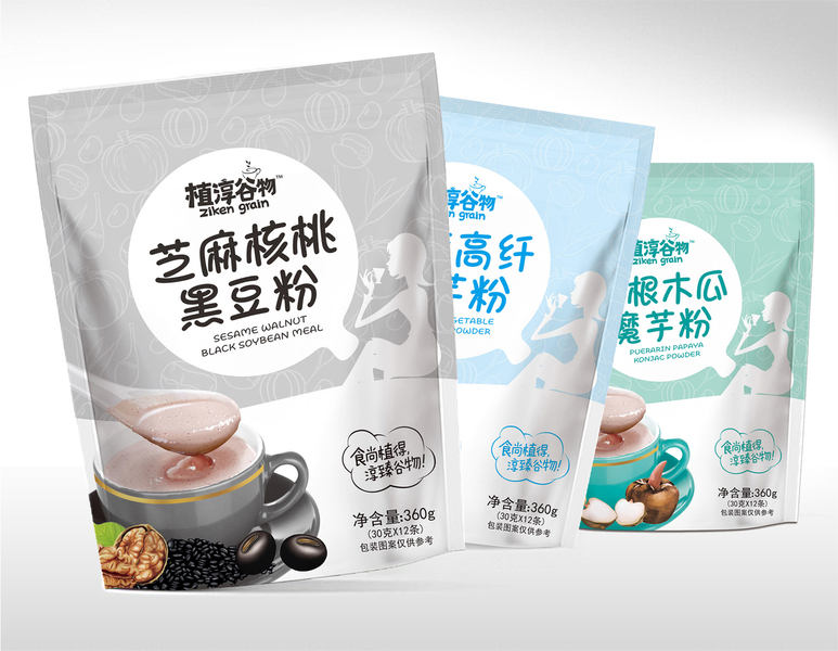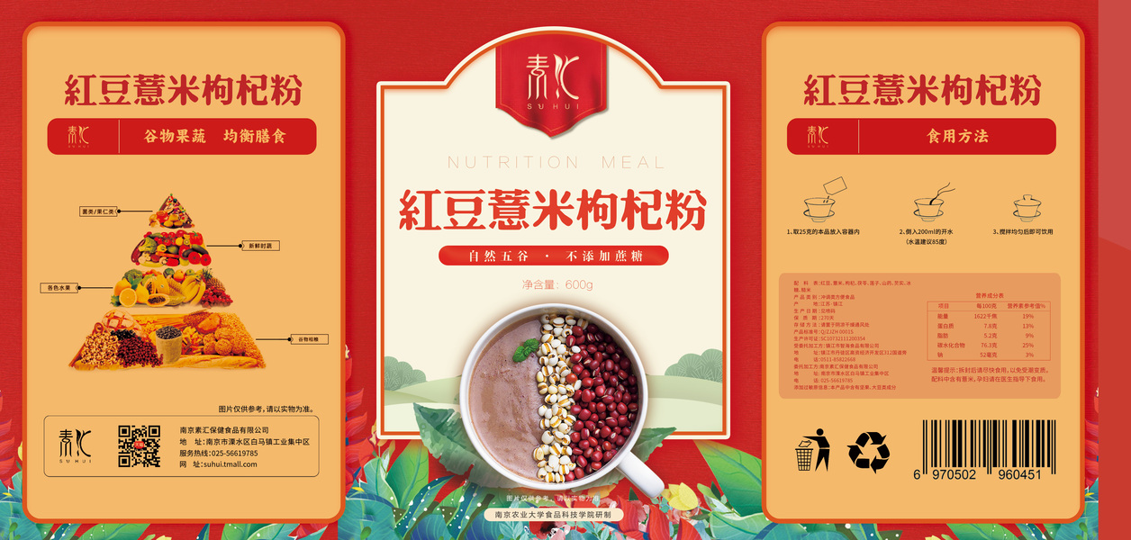 红豆薏米粉 、黑芝麻核桃粉 代餐粉罐装外包装设计