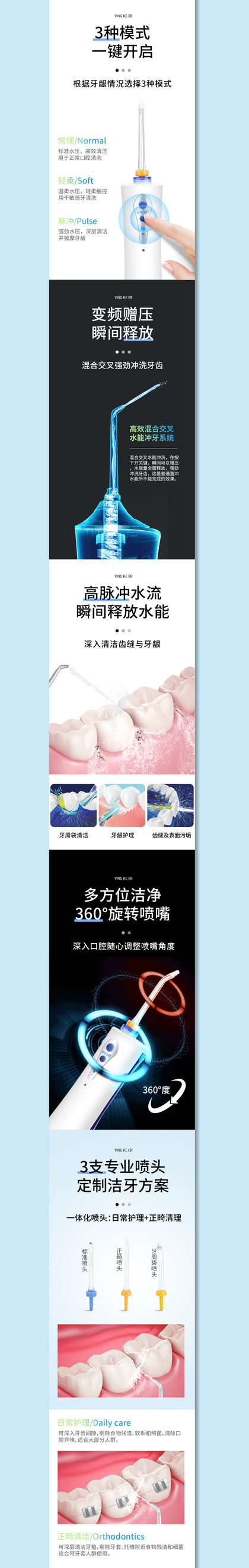 天猫京东唯品会/高档大气质感/蓝色冲牙器电器详情页