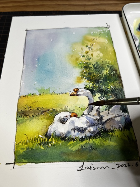 大白鹅钢笔淡彩, 有一样喜欢鹅子的宝宝吗?