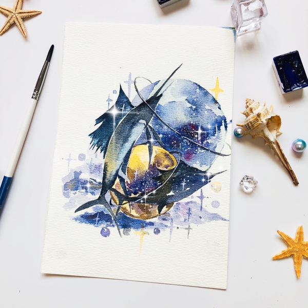 正经约稿手绘水彩【幸福一家仙境奇遇】