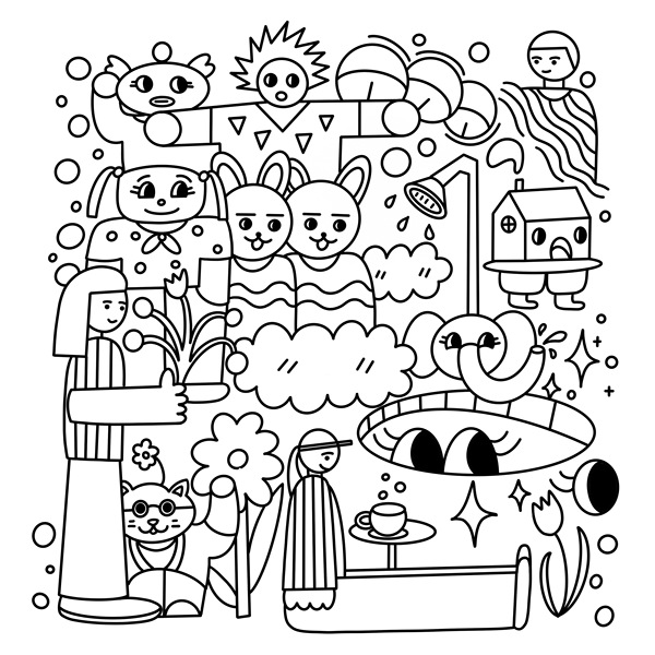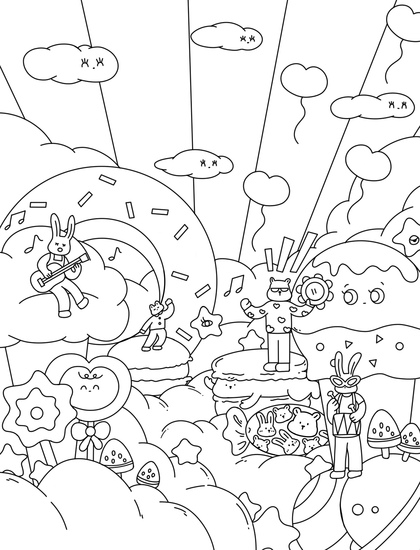 牛奶猫的奇幻旅行:魔幻森林。(黑白稿)