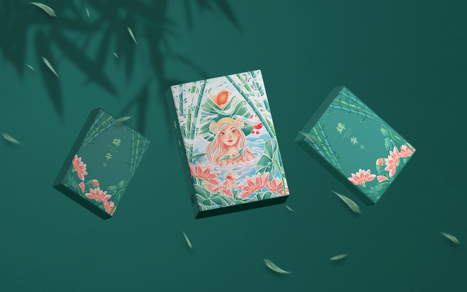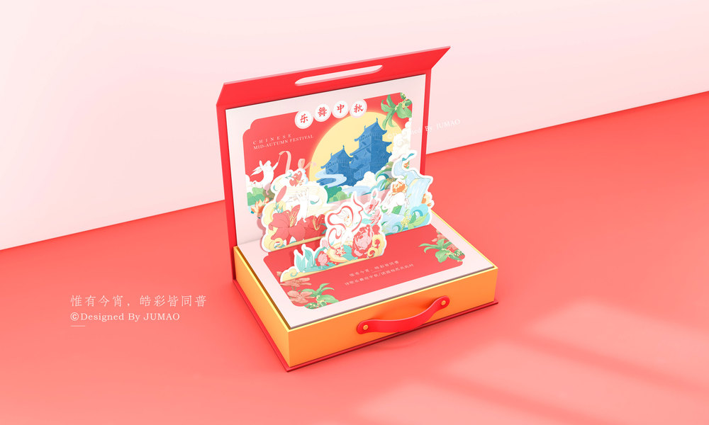 橘猫设计x中秋月夜花朝礼盒包装设计手绘国潮风插画