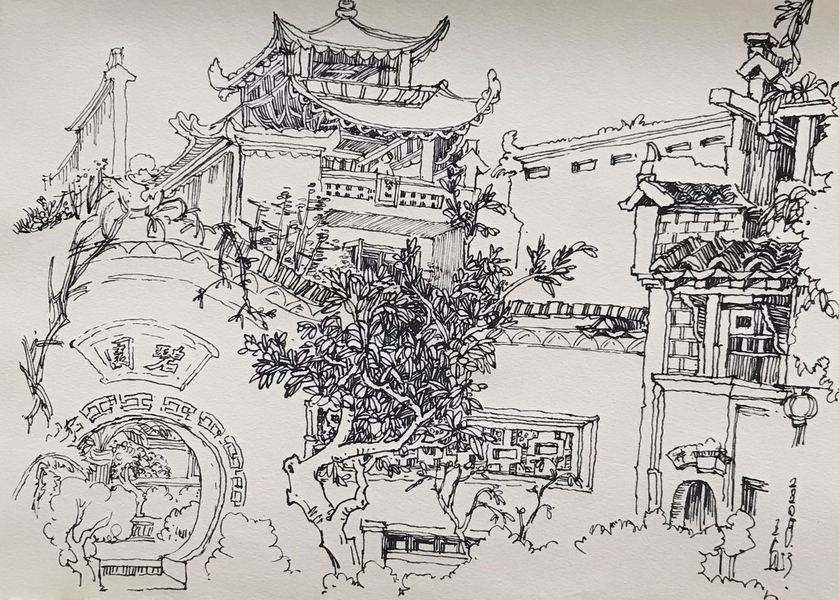 近期的速写作品《宁波的门》系列!