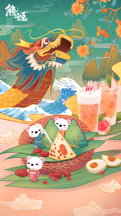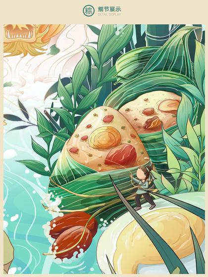 华夏情,粽之节--端午节国潮风包装海报主视觉KV插画