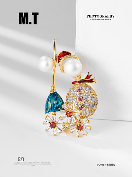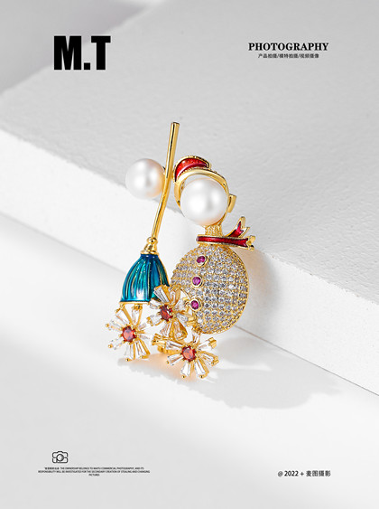 产品摄影 饰品胸针静物平铺拍摄 小清晰胸针白底拍摄