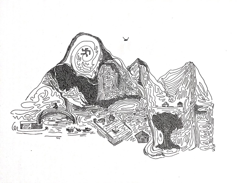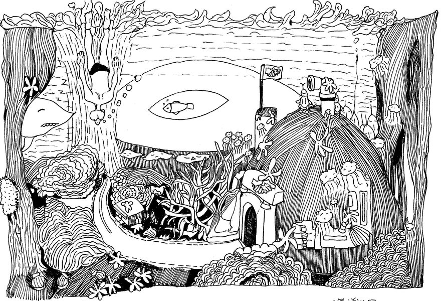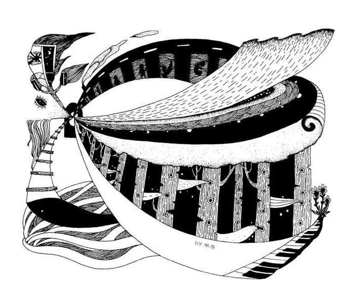 《空谷悠然》黑白稿/木头猫插画设计工作室