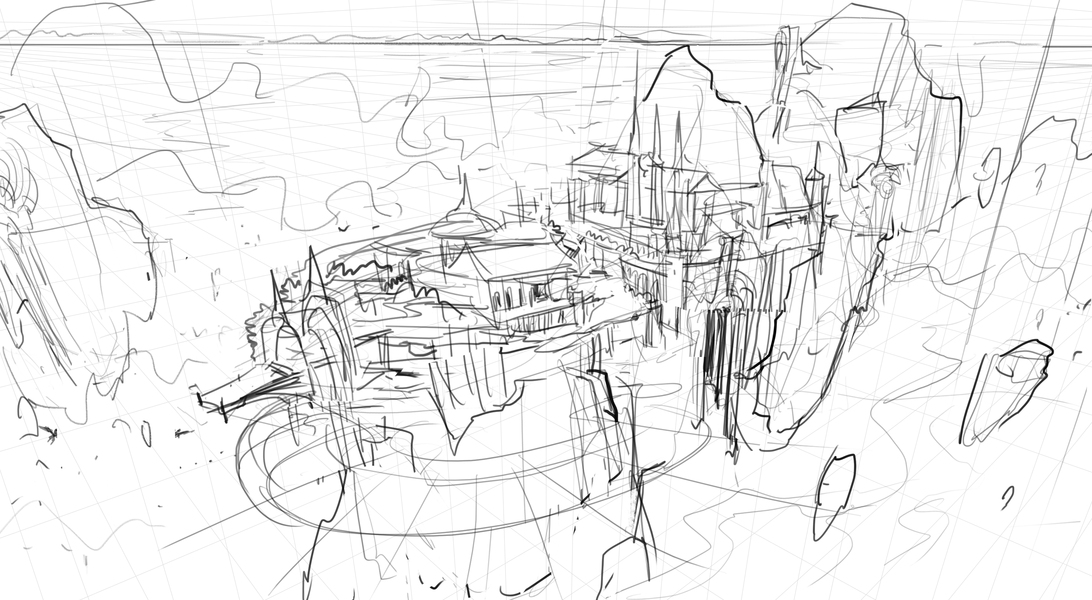海畔仙影场景概念设计,纯手绘 古法工艺