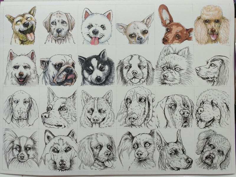 手绘卡通狗狗练习