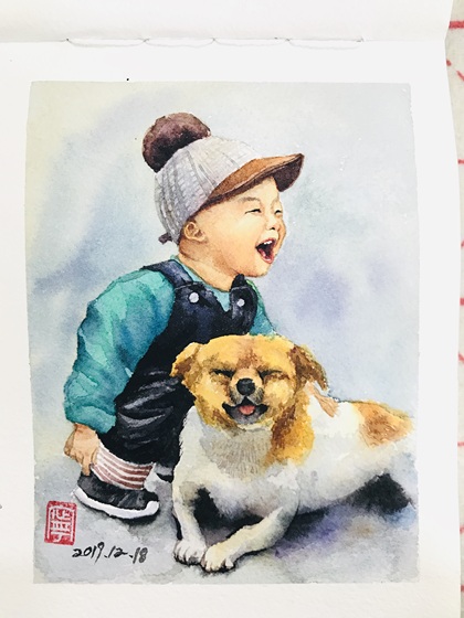 水彩|咦?狗群中乱入一只咪咪~