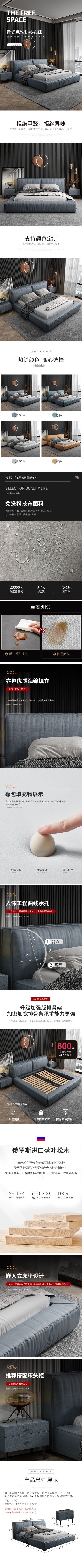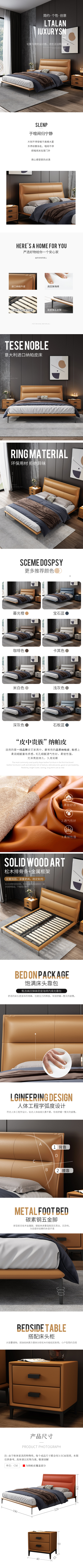 轻奢皮床详情 家具详情页 轻奢床详情页