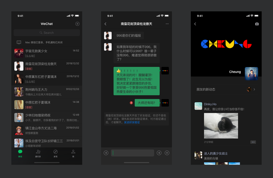 Wechat DarkMode / 深色模式尝试·微信重设计