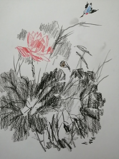 五个莲蓬,多子。五福。十个荷叶十全十美四朵花兴盛,