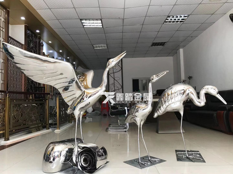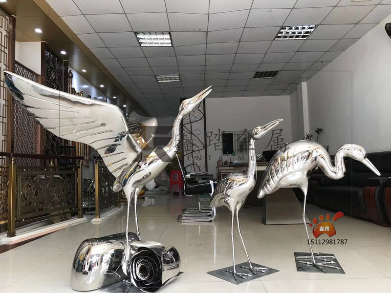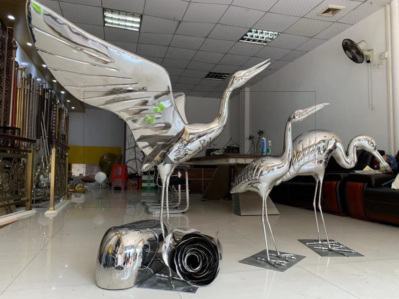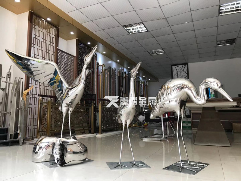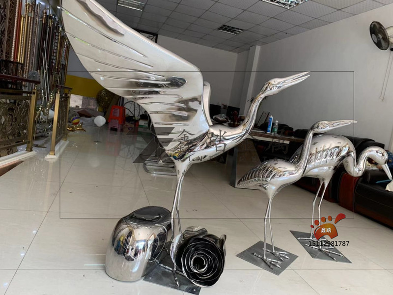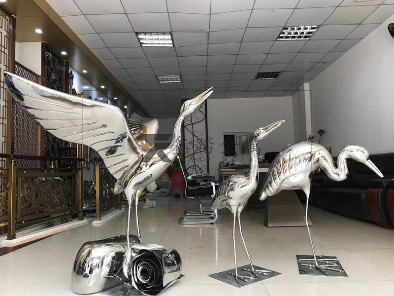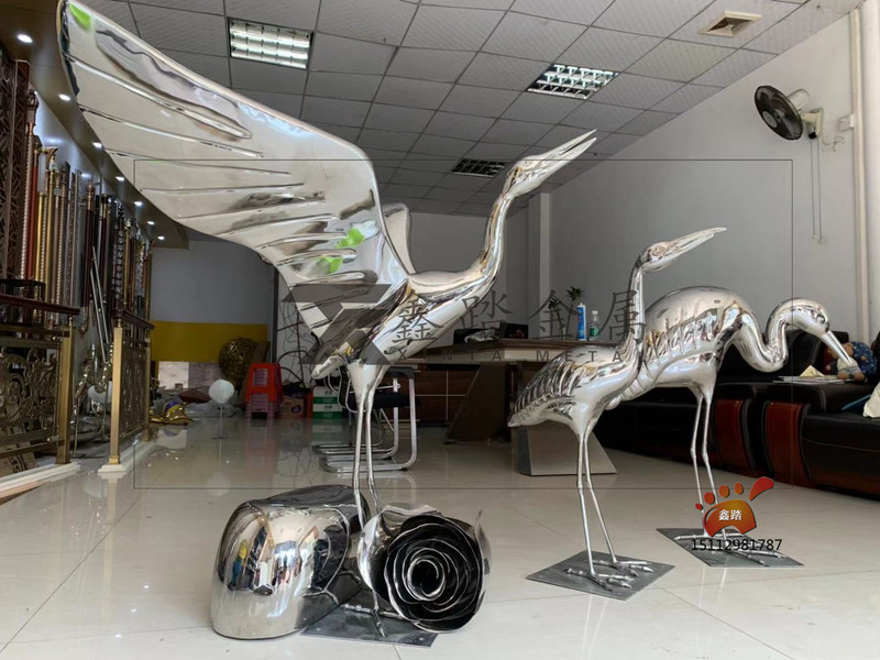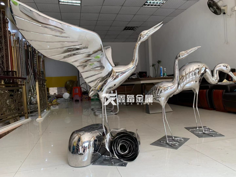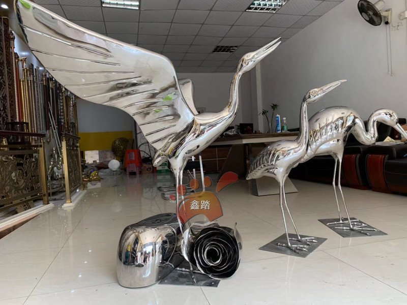 不锈钢仙鹤雕塑精磨镜面、大鹏展翅高飞