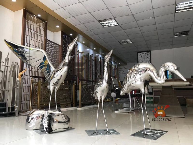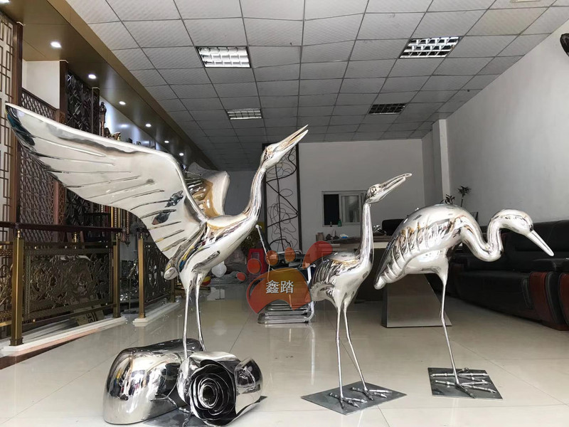 镜面不锈钢鹤雕塑 仙鹤雕塑的寓意