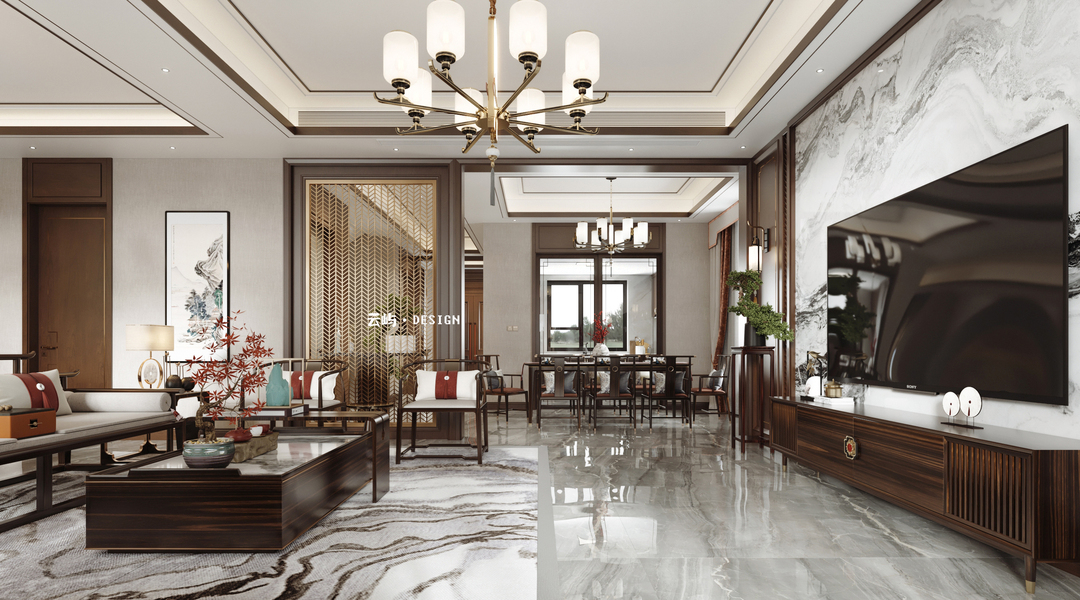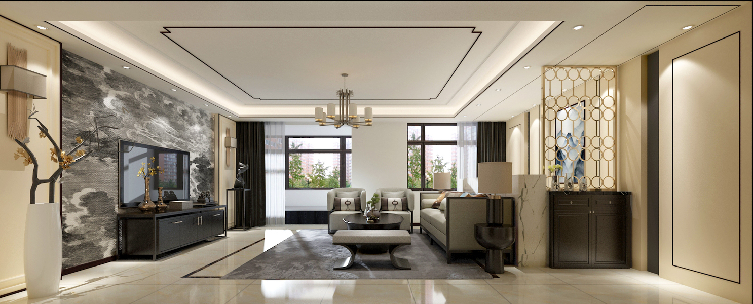 广电天韵四室两厅样板间装修设计效果图新中式赏析