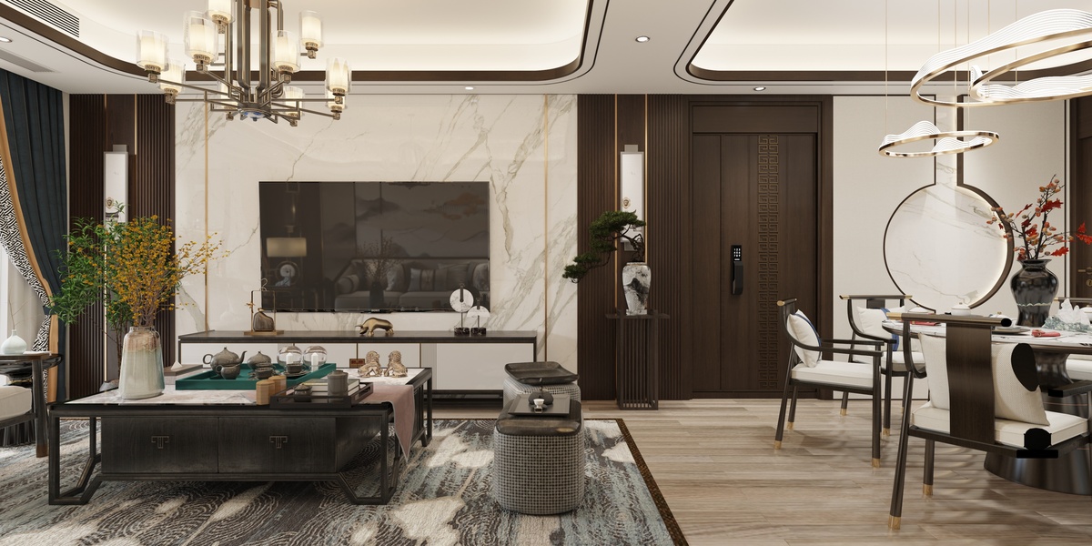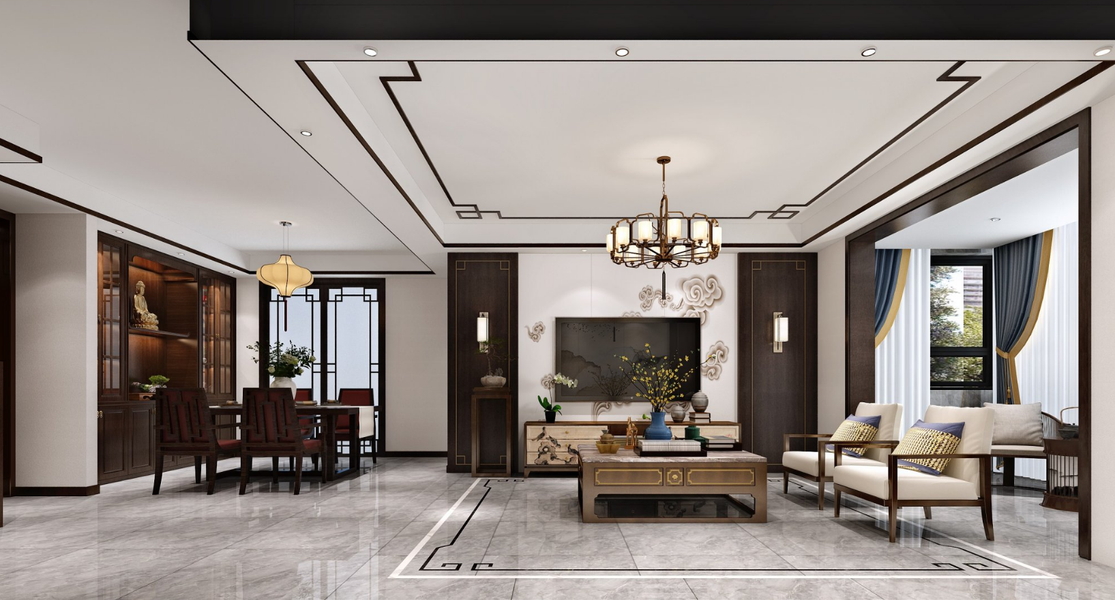 德风美瑜广场130平三室两厅新中式案例装修效果图