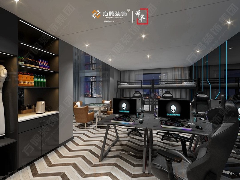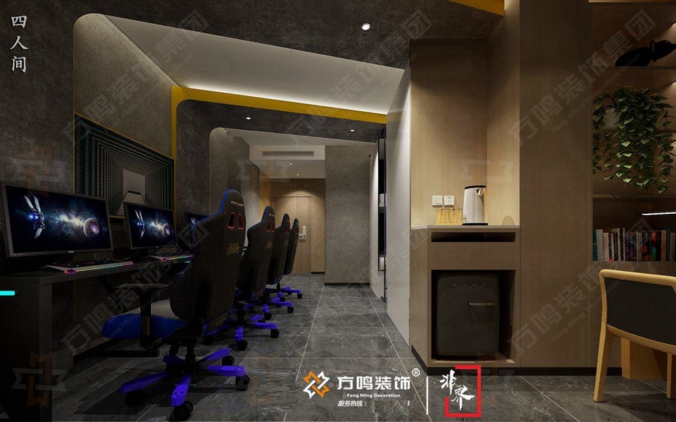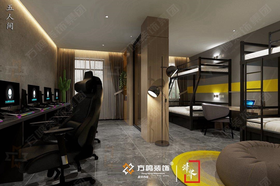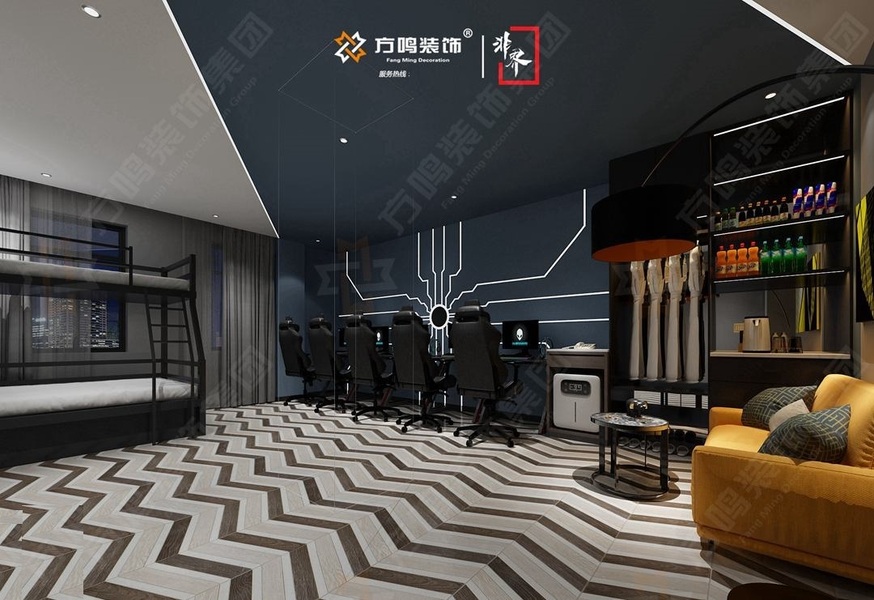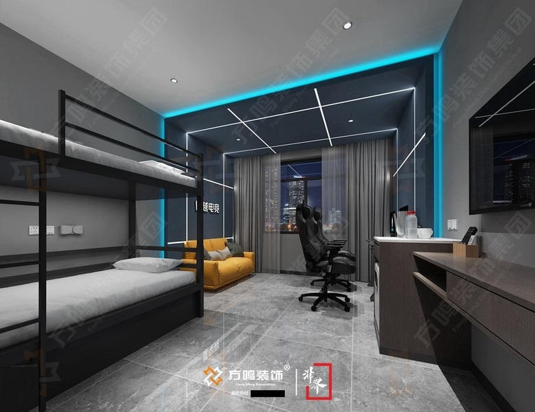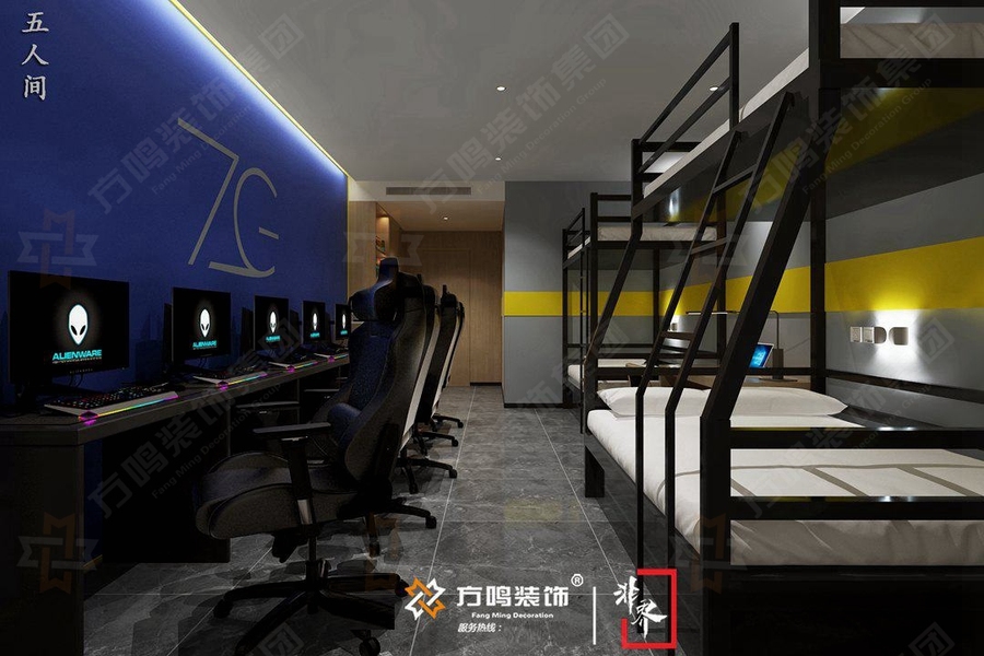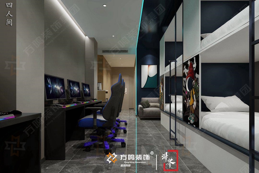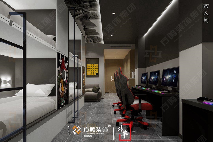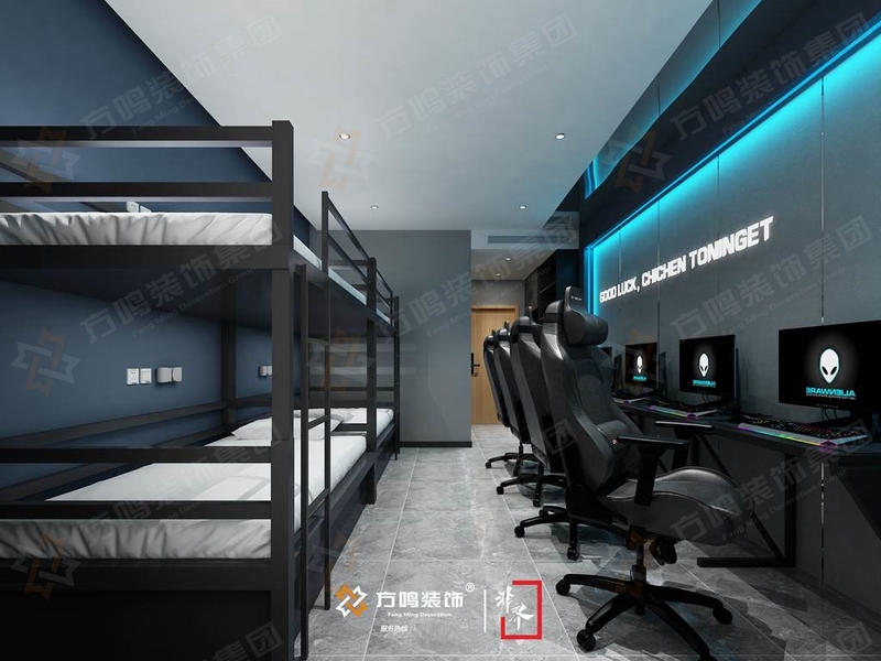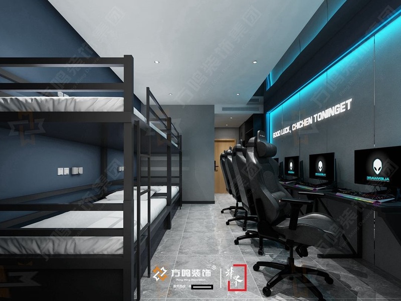 电竞酒店装修设计_低奢风电竞酒店效果图