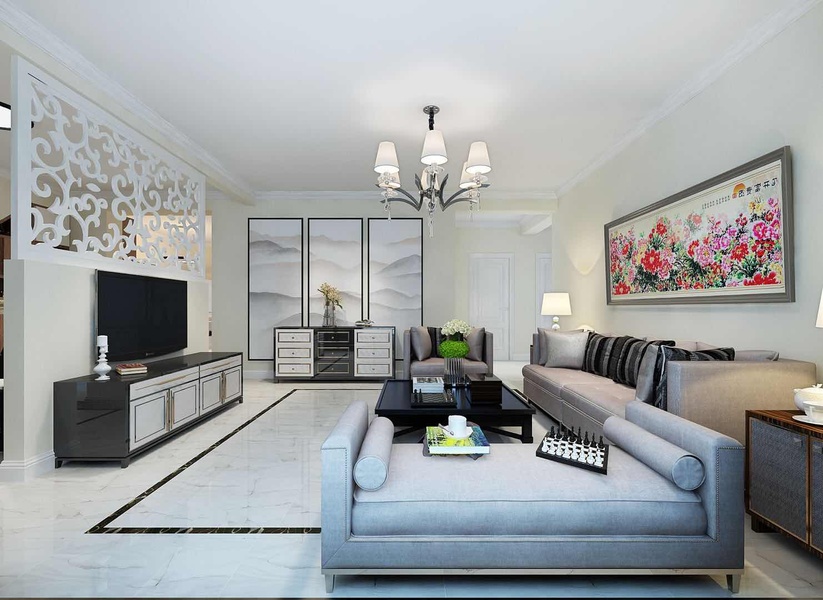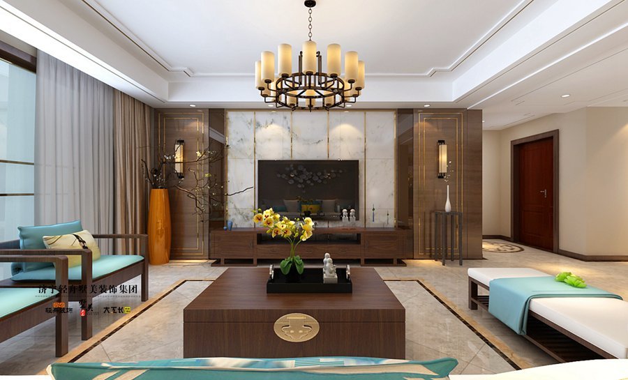 郑州永丰乐城99平三室两厅装修现代中式养老房效果图