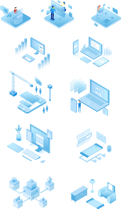 2.5D插画UI网页医疗医院诊所医生互联网仪器AI矢量素材