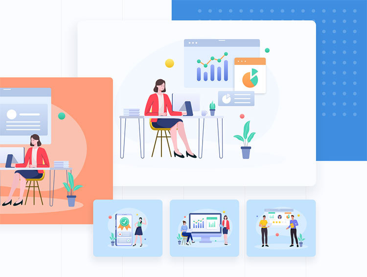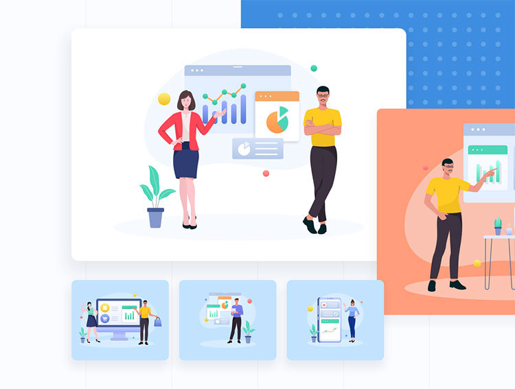 AI企业网站手机专题登陆页商务人物工作插画海报设计