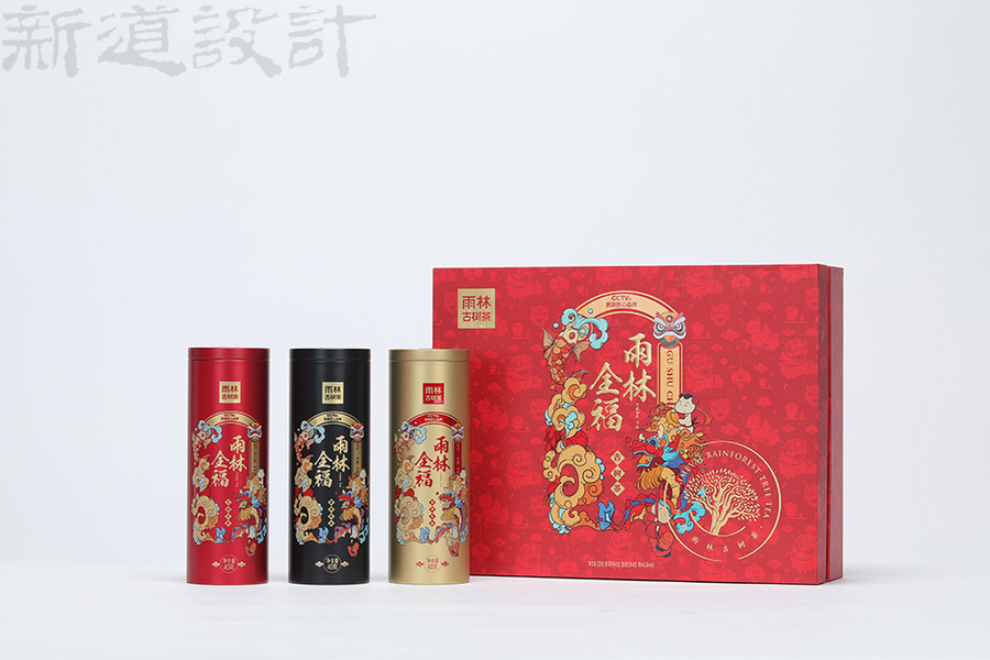 雨林古树茶 全福包装设计 新道设计 作品分享 三罐茶礼