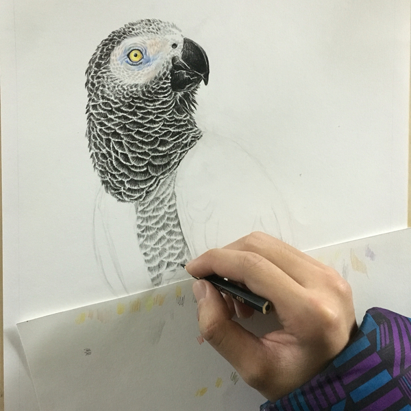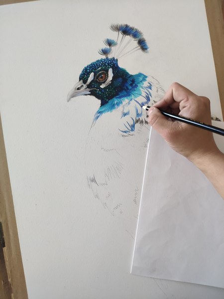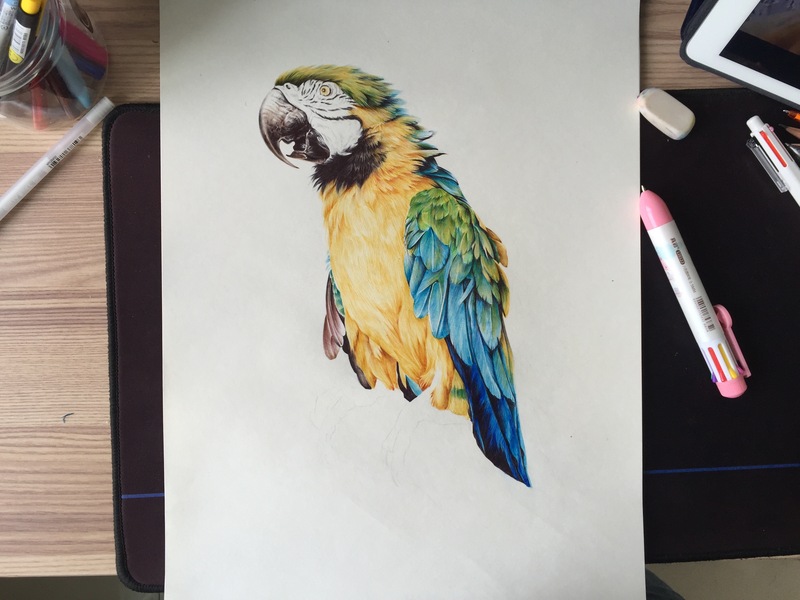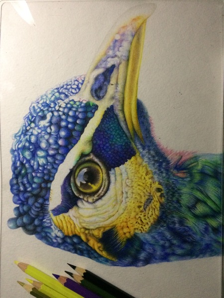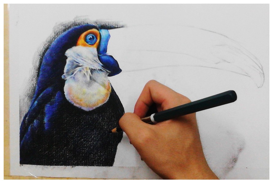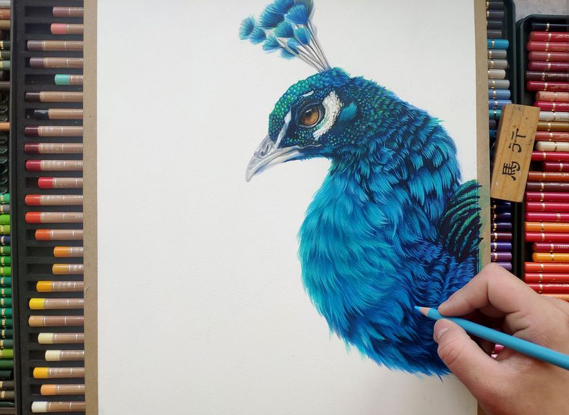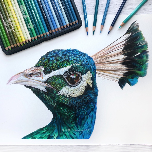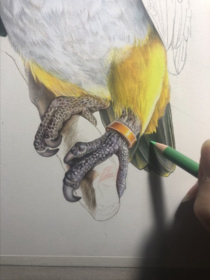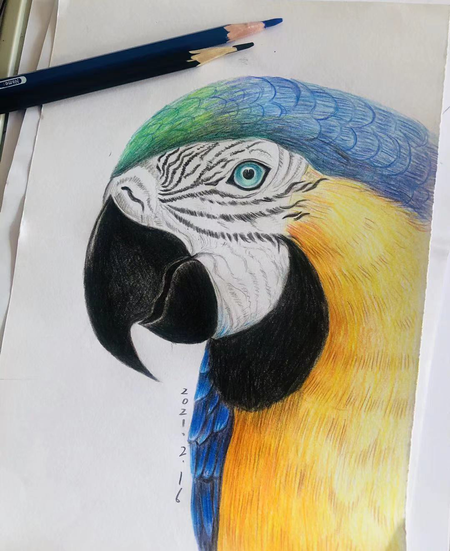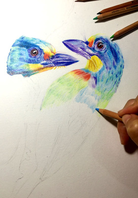 纸上彩铅--《福鸟花鸮》上色过程随录
