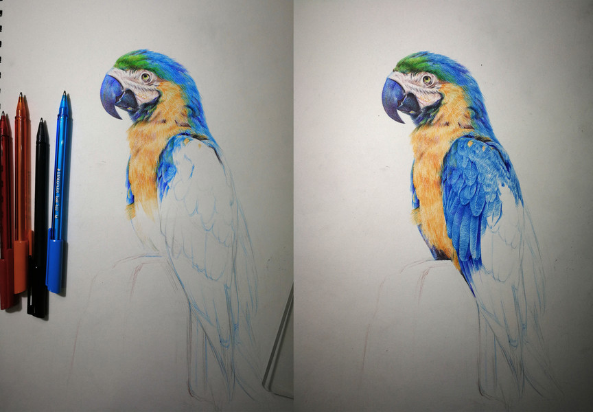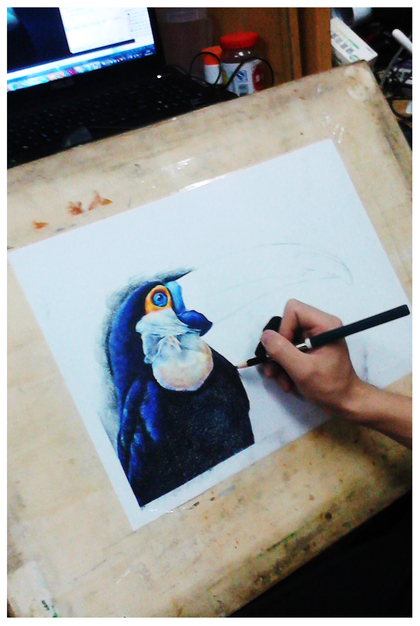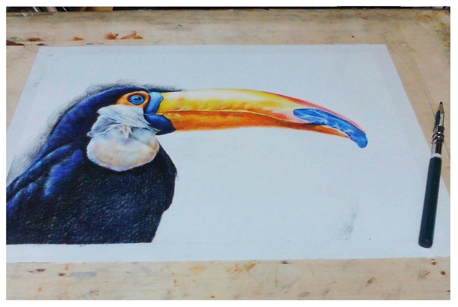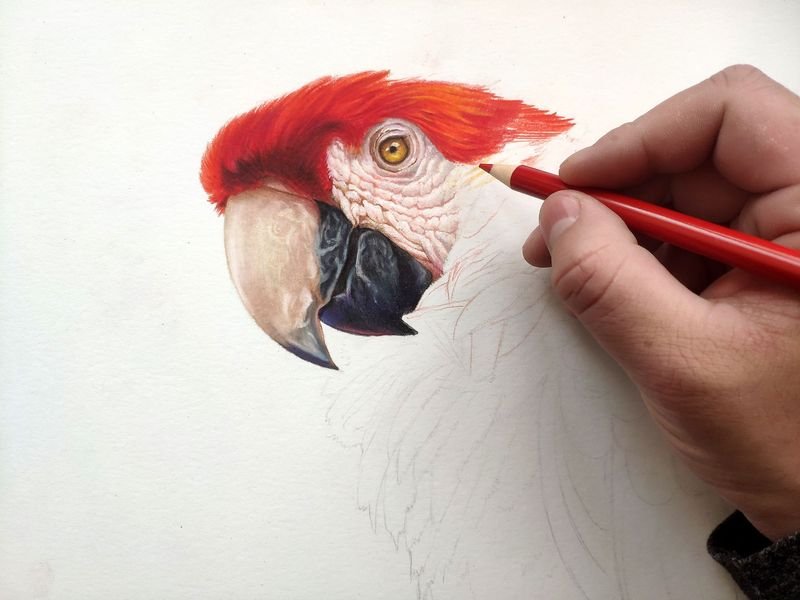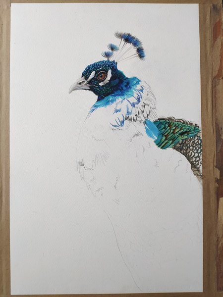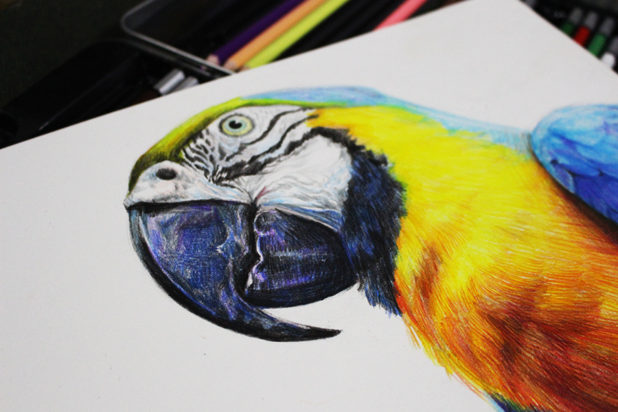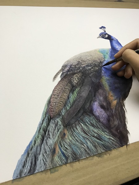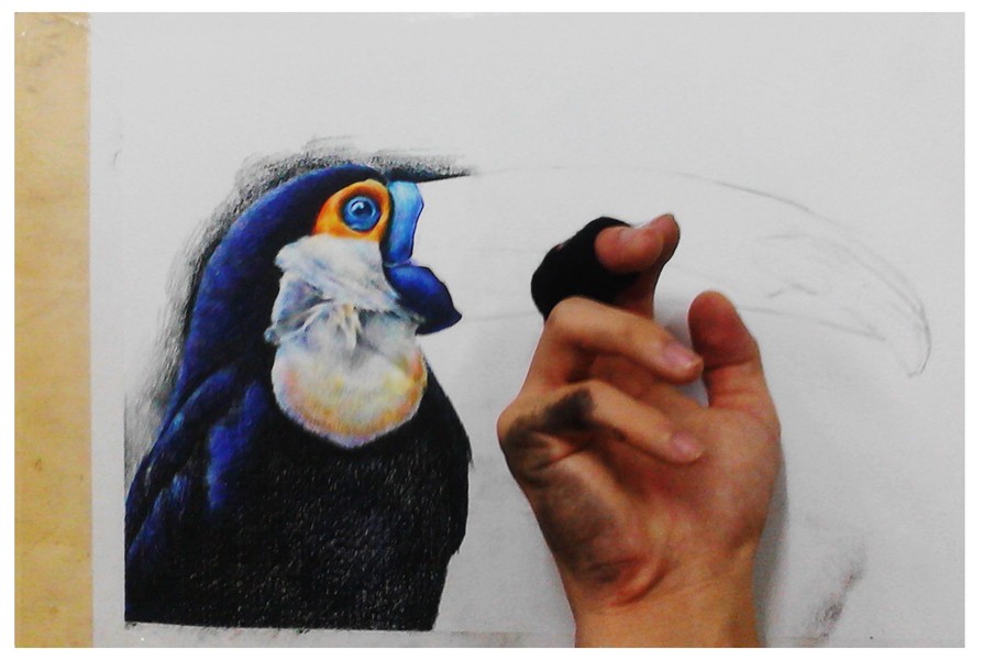 纸上彩铅--《福鸟花鸮》上色过程随录