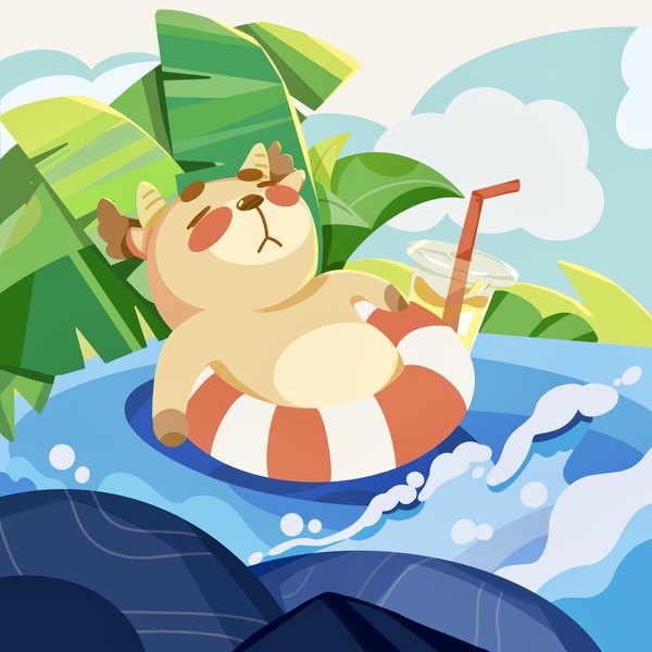 卡皮巴拉水豚萌萌夏日系列插画卡通可爱 可合作