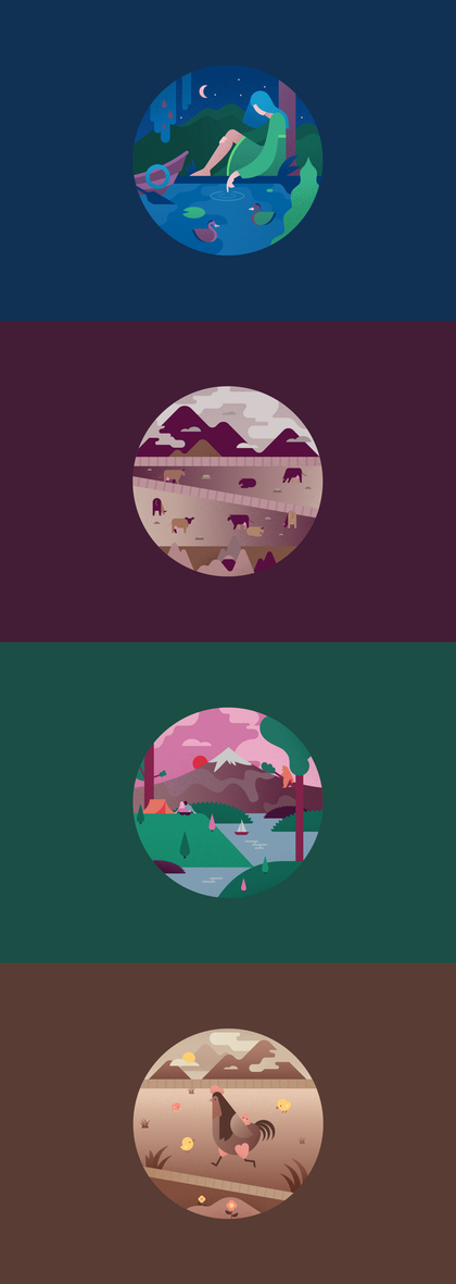 手机扁平化界面UI设计 移动端APP风景天气插画设计